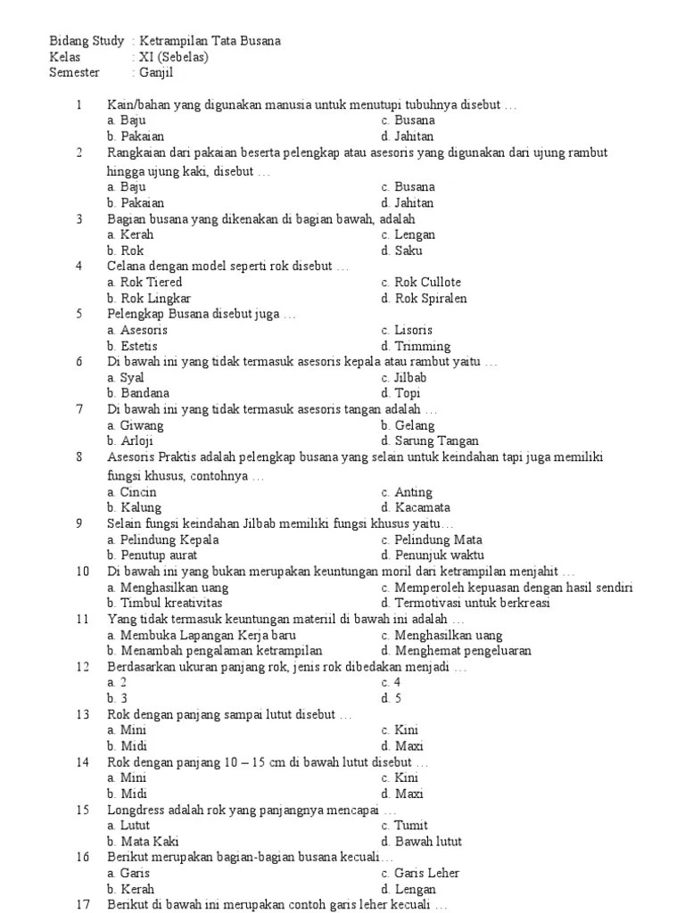 Play this game to review design. Tanyakan pada pengawas jika terdapat soal yang kurang jelas. Kelas xi tata busana untuk mata pelajaran pembuatan busana industri. Contoh soal produktif busana kelas . Tulis nama,kelas pada kolom yang disediakan.