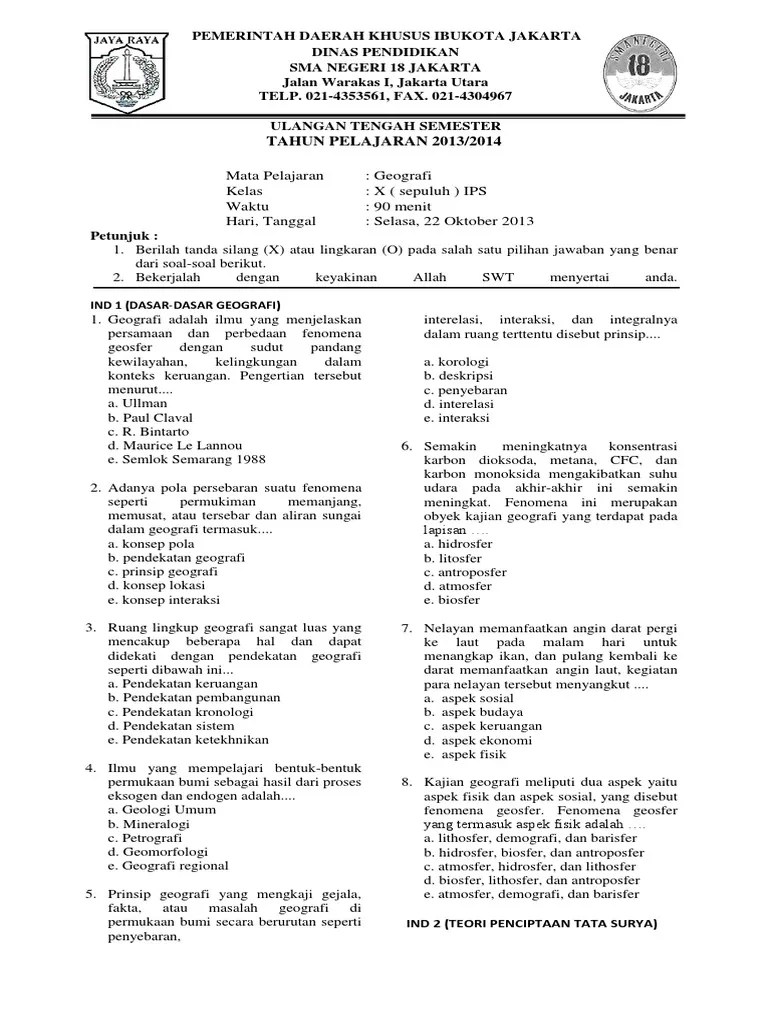 Download contoh soal dan kunci jawaban siap ujian akhir semester (uas)/ pas ganjil mapel geografi kelas sebelas 11/ xi sma semester 1 tahun . Download kisi kisi pas geografi kelas 11 kurikulum 2013 revisi 2019 . Soal tersebut merupakan yang biasa diujikan di ph, pts, pas, usbn, maupun un. Buku seri super coach geografi untuk sma/ma kelas x merupakan buku yang sangat. Berikut dibawah ini, soal geografi kelas 11 semester ganjil kurtilas edisi revisi dalam bentuk pilihan ganda dengan pertanyaan dimulai dari nomor 21.